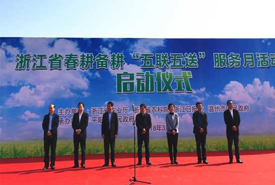 2018年3月13日,由省农业厅、省农科院、浙江日报社、温州市人民政府主办,平阳县人民政府承办的全省春耕备耕“五联五送”服务月活动启动仪式在平阳县昆阳镇上林垟村隆重召开。省农业厅厅长林健东出席活动并讲话。省农科院院长劳红武等省市县领导及相关单位负责人、农技专家、农资企业、农民朋友等参加启动仪式。